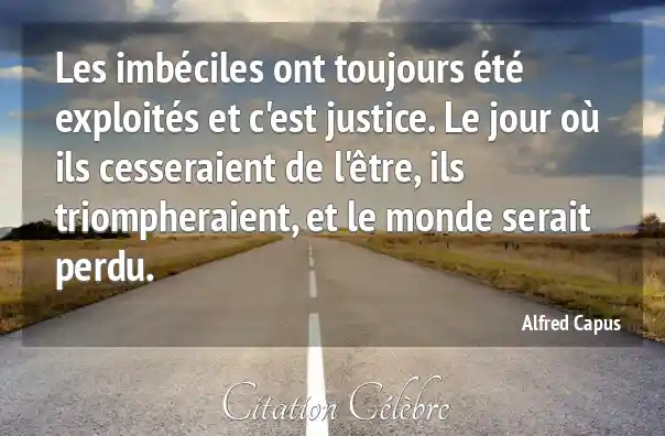 Les imbéciles ont toujours été exploités et c'est justice. Le jour où ils cesseraient de l'être, ils triompheraient, et le monde serait perdu.