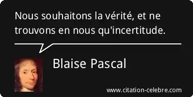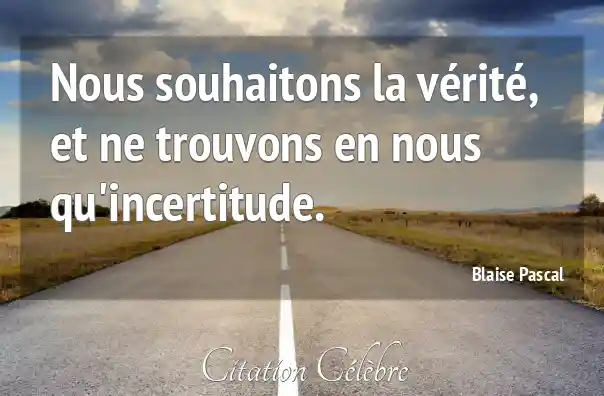 Nous souhaitons la vérité, et ne trouvons en nous qu'incertitude.