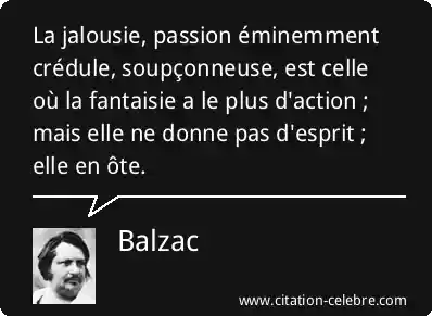 La jalousie, passion éminemment crédule, soupçonneuse, est celle où la fantaisie a le plus d'action ; mais elle ne donne pas d'esprit ; elle en ôte.