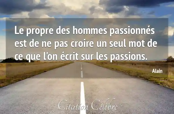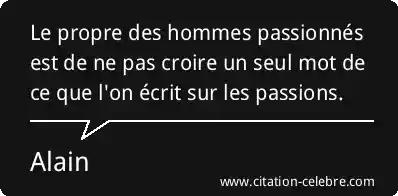 Le propre des hommes passionnés est de ne pas croire un seul mot de ce que l'on écrit sur les passions.
