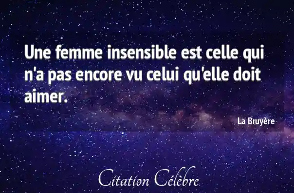 Une femme insensible est celle qui n'a pas encore vu celui qu'elle doit aimer.