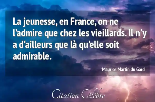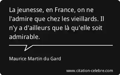 La jeunesse, en France, on ne l'admire que chez les vieillards. Il n'y a d'ailleurs que là qu'elle soit admirable.