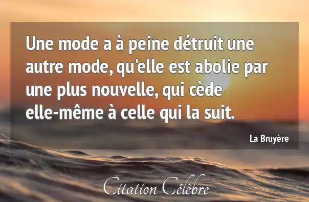 Une mode a à peine détruit une autre mode, qu'elle est abolie par une plus nouvelle, qui cède elle-même à celle qui la suit.
