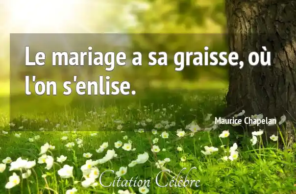 Le mariage a sa graisse, où l'on s'enlise.