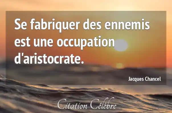 Se fabriquer des ennemis est une occupation d'aristocrate.