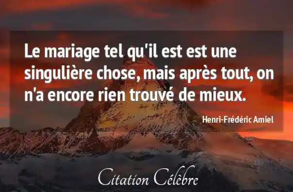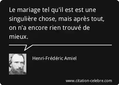 Le mariage tel qu'il est est une singulière chose, mais après tout, on n'a encore rien trouvé de mieux.