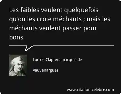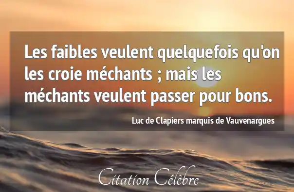 Les faibles veulent quelquefois qu'on les croie méchants ; mais les méchants veulent passer pour bons.