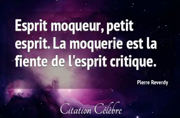 Esprit moqueur, petit esprit. La moquerie est la fiente de l'esprit critique.