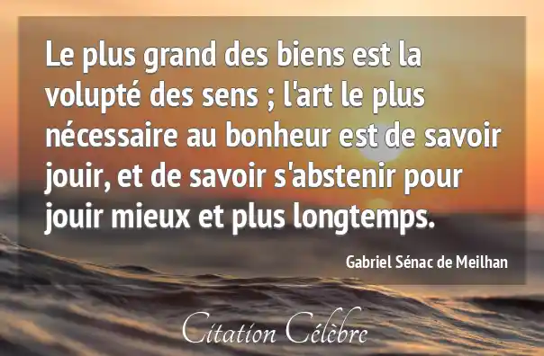 Le plus grand des biens est la volupté des sens ; l'art le plus nécessaire au bonheur est de savoir jouir, et de savoir s'abstenir pour jouir mieux et plus longtemps.