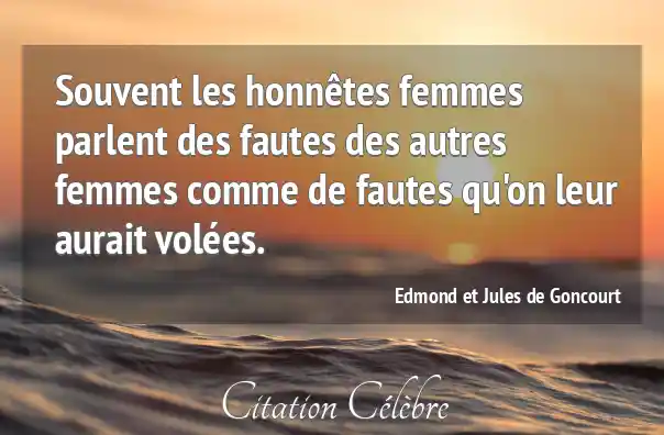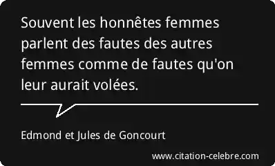 Souvent les honnêtes femmes parlent des fautes des autres femmes comme de fautes qu'on leur aurait volées.