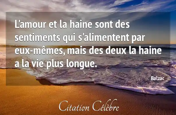 L'amour et la haine sont des sentiments qui s'alimentent par eux-mêmes, mais des deux la haine a la vie plus longue.