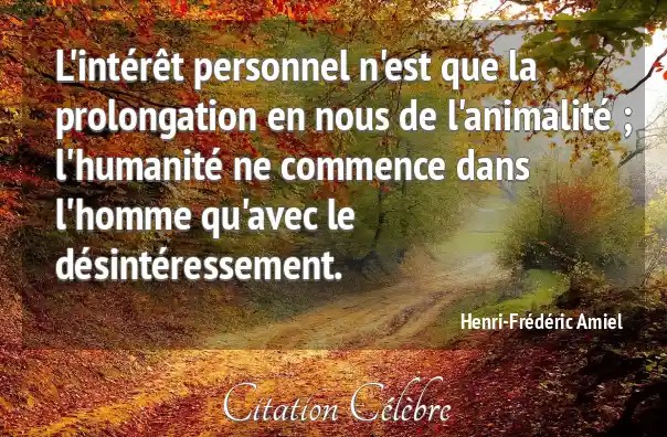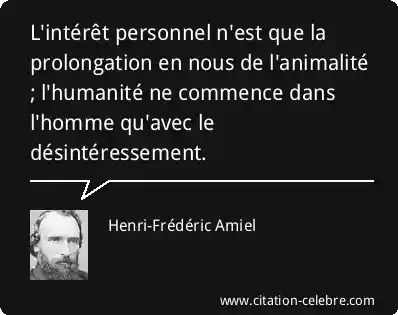L'intérêt personnel n'est que la prolongation en nous de l'animalité ; l'humanité ne commence dans l'homme qu'avec le désintéressement.