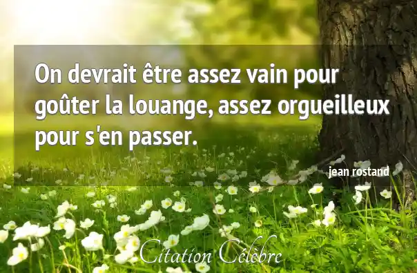 On devrait être assez vain pour goûter la louange, assez orgueilleux pour s'en passer.