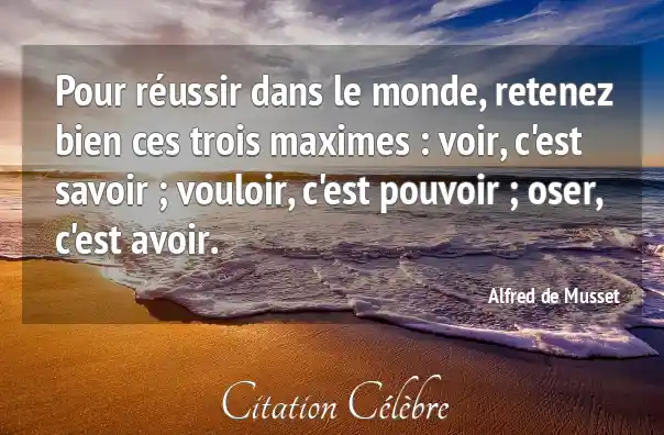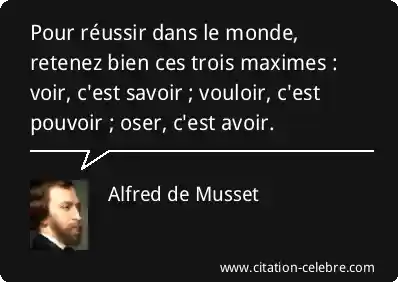 Pour réussir dans le monde, retenez bien ces trois maximes : voir, c'est savoir ; vouloir, c'est pouvoir ; oser, c'est avoir.