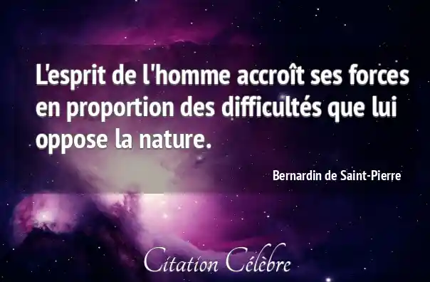 L'esprit de l'homme accroît ses forces en proportion des difficultés que lui oppose la nature.
