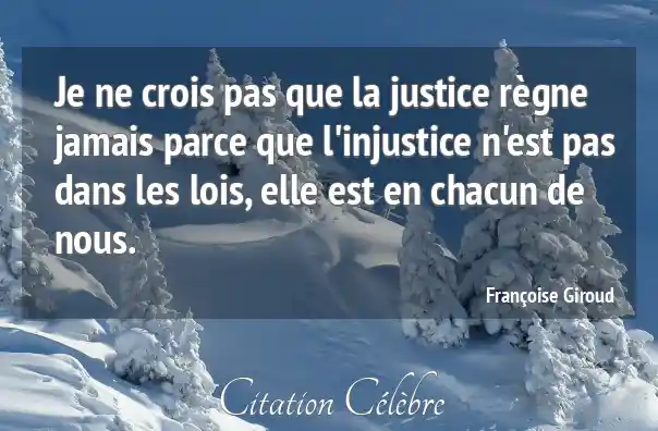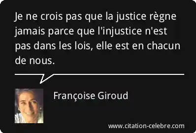 Je ne crois pas que la justice règne jamais parce que l'injustice n'est pas dans les lois, elle est en chacun de nous.