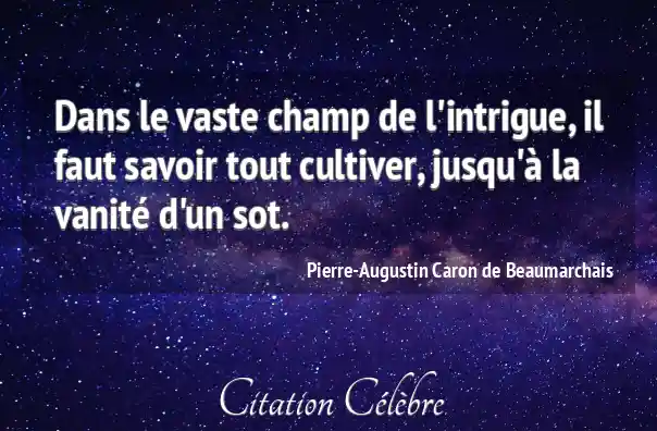Dans le vaste champ de l'intrigue, il faut savoir tout cultiver, jusqu'à la vanité d'un sot.