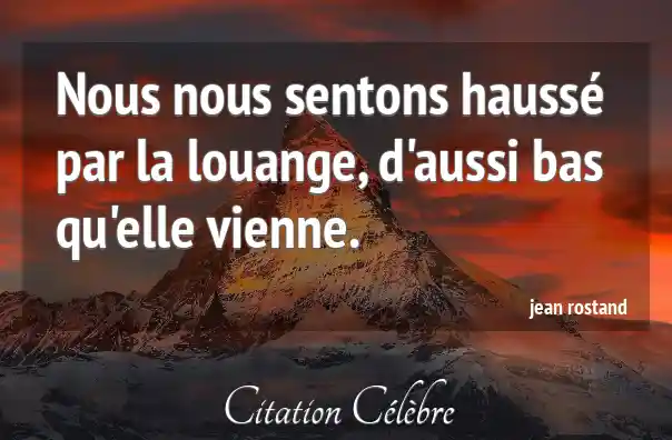 Nous nous sentons haussé par la louange, d'aussi bas qu'elle vienne.