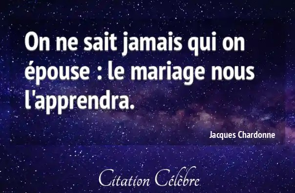 On ne sait jamais qui on épouse : le mariage nous l'apprendra.