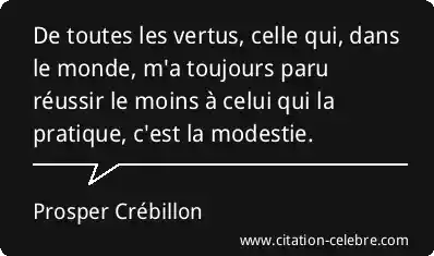 De toutes les vertus, celle qui, dans le monde, m'a toujours paru réussir le moins à celui qui la pratique, c'est la modestie.