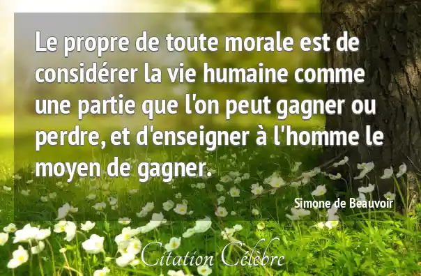 Le propre de toute morale est de considérer la vie humaine comme une partie que l'on peut gagner ou perdre, et d'enseigner à l'homme le moyen de gagner.