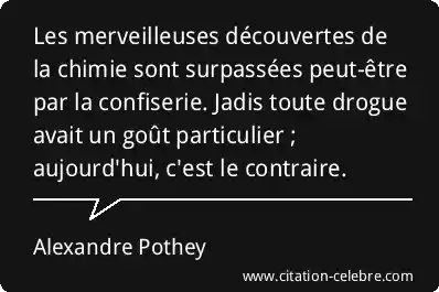 Les merveilleuses découvertes de la chimie sont surpassées peut-être par la confiserie. Jadis toute drogue avait un goût particulier ; aujourd'hui, c'est le contraire.