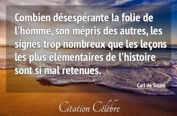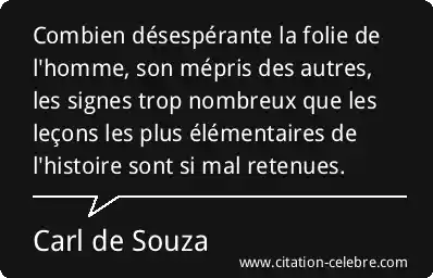 Combien désespérante la folie de l'homme, son mépris des autres, les signes trop nombreux que les leçons les plus élémentaires de l'histoire sont si mal retenues.