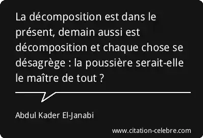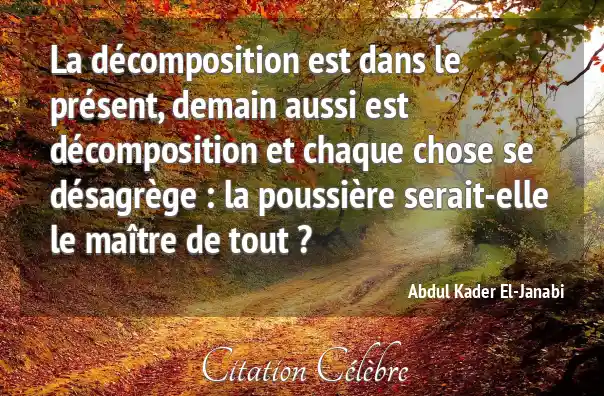 La décomposition est dans le présent, demain aussi est décomposition et chaque chose se désagrège : la poussière serait-elle le maître de tout ?
