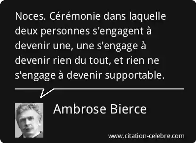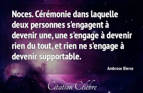 Noces. Cérémonie dans laquelle deux personnes s'engagent à devenir une, une s'engage à devenir rien du tout, et rien ne s'engage à devenir supportable.