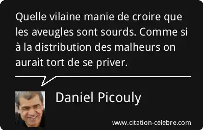 Quelle vilaine manie de croire que les aveugles sont sourds. Comme si à la distribution des malheurs on aurait tort de se priver.