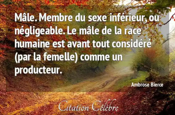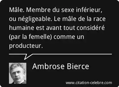 Mâle. Membre du sexe inférieur, ou négligeable. Le mâle de la race humaine est avant tout considéré (par la femelle) comme un producteur.