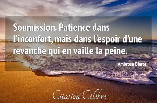 Soumission. Patience dans l'inconfort, mais dans l'espoir d'une revanche qui en vaille la peine.