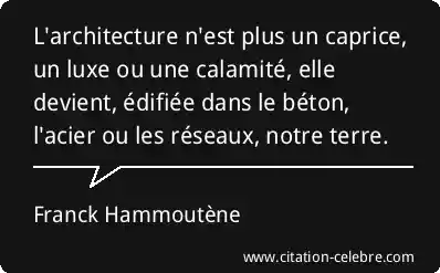 L'architecture n'est plus un caprice, un luxe ou une calamité, elle devient, édifiée dans le béton, l'acier ou les réseaux, notre terre.