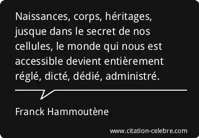 Naissances, corps, héritages, jusque dans le secret de nos cellules, le monde qui nous est accessible devient entièrement réglé, dicté, dédié, administré.