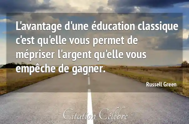 L'avantage d'une éducation classique c'est qu'elle vous permet de mépriser l'argent qu'elle vous empêche de gagner.
