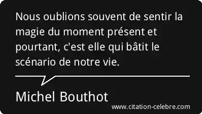 Nous oublions souvent de sentir la magie du moment présent et pourtant, c'est elle qui bâtit le scénario de notre vie.