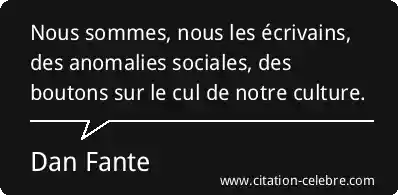 Nous sommes, nous les écrivains, des anomalies sociales, des boutons sur le cul de notre culture.