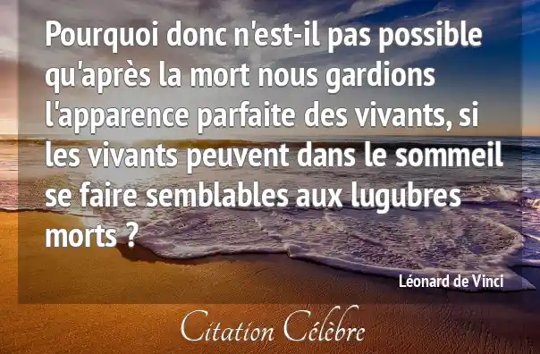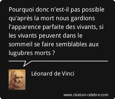 Pourquoi donc n'est-il pas possible qu'après la mort nous gardions l'apparence parfaite des vivants, si les vivants peuvent dans le sommeil se faire semblables aux lugubres morts ?