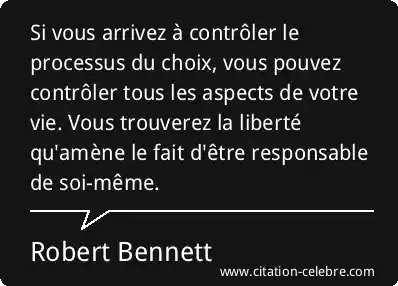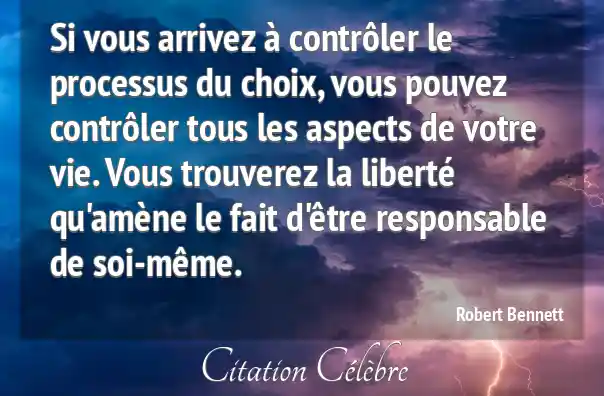 Si vous arrivez à contrôler le processus du choix, vous pouvez contrôler tous les aspects de votre vie. Vous trouverez la liberté qu'amène le fait d'être responsable de soi-même.