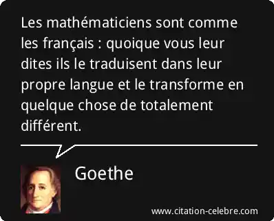 Les mathématiciens sont comme les français : quoique vous leur dites ils le traduisent dans leur propre langue et le transforme en quelque chose de totalement différent.