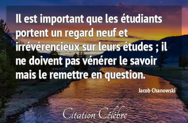 Il est important que les étudiants portent un regard neuf et irrévérencieux sur leurs études ; il ne doivent pas vénérer le savoir mais le remettre en question.