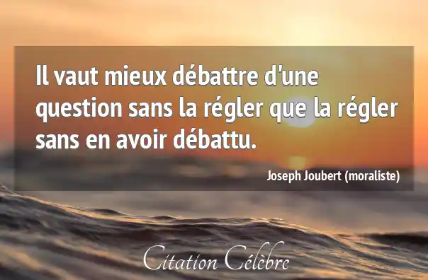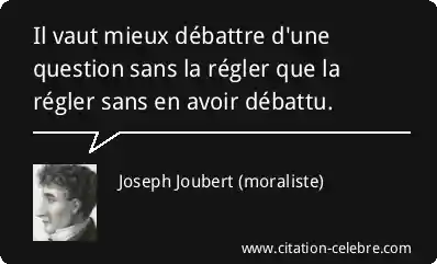 Il vaut mieux débattre d'une question sans la régler que la régler sans en avoir débattu.