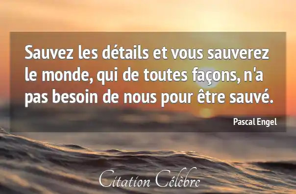 Citation Pascal Engel monde : Sauvez les détails et vous sauverez le monde, qui de...
