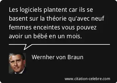 Les logiciels plantent car ils se basent sur la théorie qu'avec neuf femmes enceintes vous pouvez avoir un bébé en un mois.
