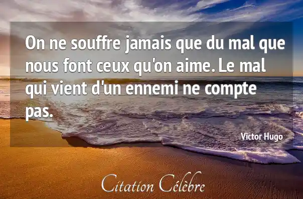On ne souffre jamais que du mal que nous font ceux qu'on aime. Le mal qui vient d'un ennemi ne compte pas.