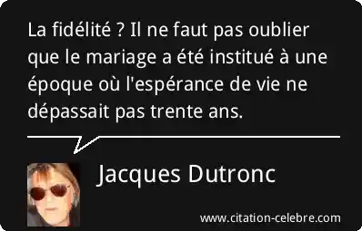 La fidélité ? Il ne faut pas oublier que le mariage a été institué à une époque où l'espérance de vie ne dépassait pas trente ans.