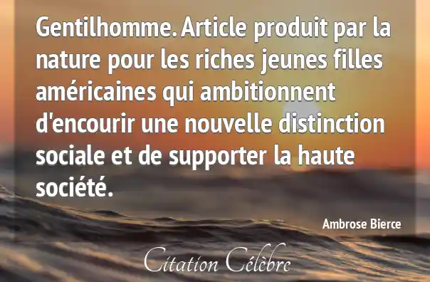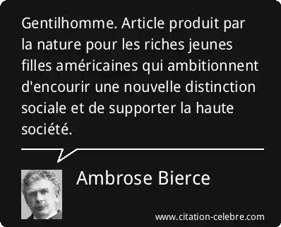 Gentilhomme. Article produit par la nature pour les riches jeunes filles américaines qui ambitionnent d'encourir une nouvelle distinction sociale et de supporter la haute société.
