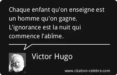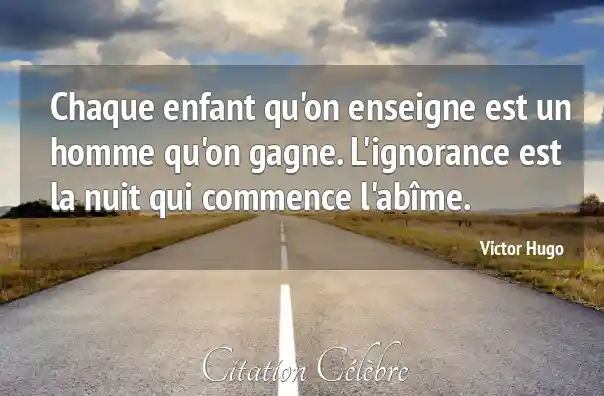 Chaque enfant qu'on enseigne est un homme qu'on gagne. L'ignorance est la nuit qui commence l'abîme.