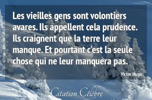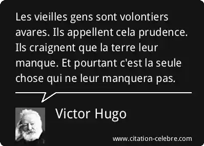 Les vieilles gens sont volontiers avares. Ils appellent cela prudence. Ils craignent que la terre leur manque. Et pourtant c'est la seule chose qui ne leur manquera pas.