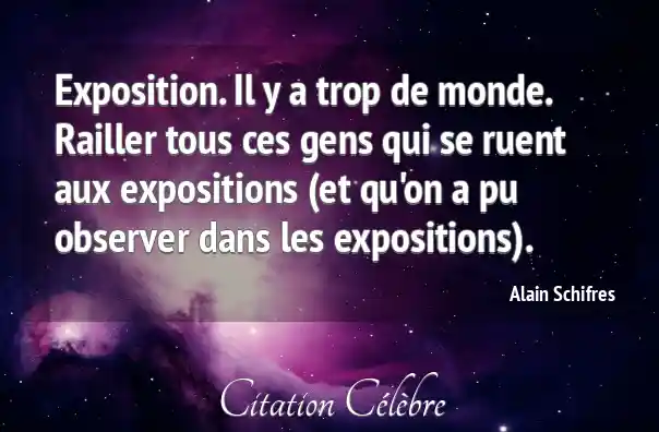 Exposition. Il y a trop de monde. Railler tous ces gens qui se ruent aux expositions (et qu'on a pu observer dans les expositions).